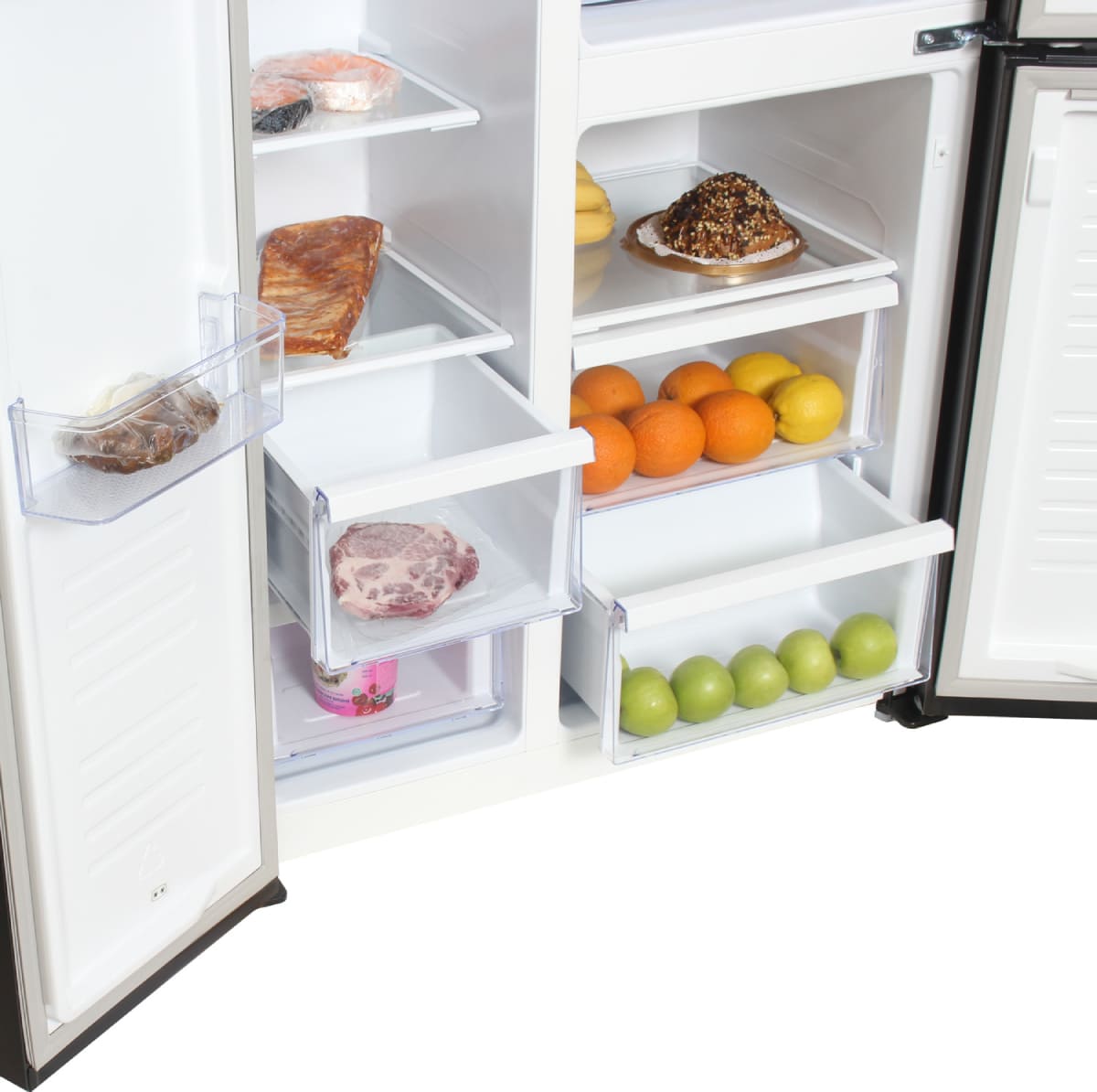 Холодильники Side-by-Side, что в переводе означает «бок-о-бок», — вместительные устройства, в которых холодильная и морозильная камеры располагаются рядом друг с другом. Они предназначаются для хранения значительного запаса продуктов и иногда называются холодильниками с американским типом компоновки, поскольку такие приборы с распашными дверями появились именно в США.