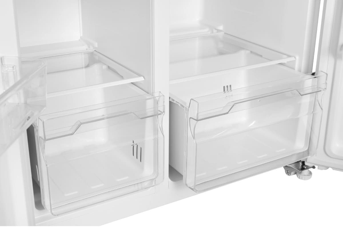 В числе подобных устройств имеются как отдельностоящие, так и встраиваемые модели: в любом случае они требуют много места для установки и могут быть размещены в просторном помещении. Преимуществом подобных устройств является прежде всего их вместительность, отличный обзор обеих камер, удобство использования, два контура охлаждения и возможность точной раздельной регулировки температуры. Кроме того, модели Side-by-Side преимущественно относятся к премиум-классу — имеют стильный внешний вид и большой набор дополнительных возможностей. Система размораживания подобных устройств — No Frost или капельная, — позволяет свести уход за прибором к минимуму.