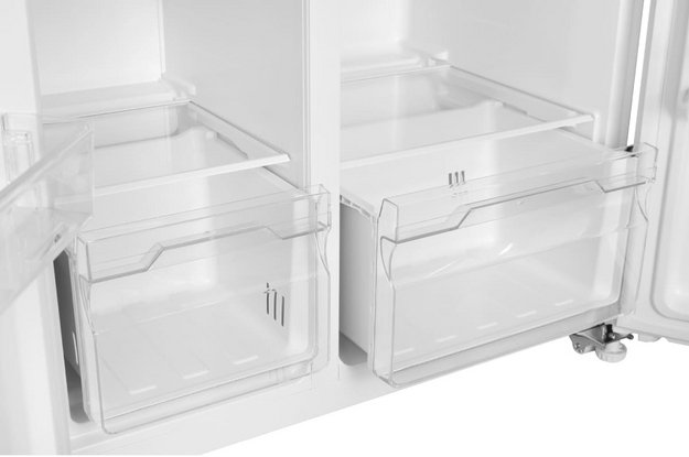 Данная модель — отдельностоящая, поэтому нужно тщательно подобрать место для ее размещения. Холодильник Side-by-Side с необычным расположением камер — сбоку друг от друга — позволяет увеличить объем продуктов для хранения. Такой вариант подходит обладателям просторной кухни, большим семьям, людям, которые запасают продукты и готовят впрок. Количество камер: 2.
