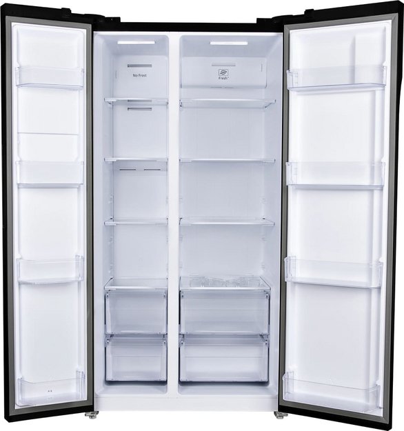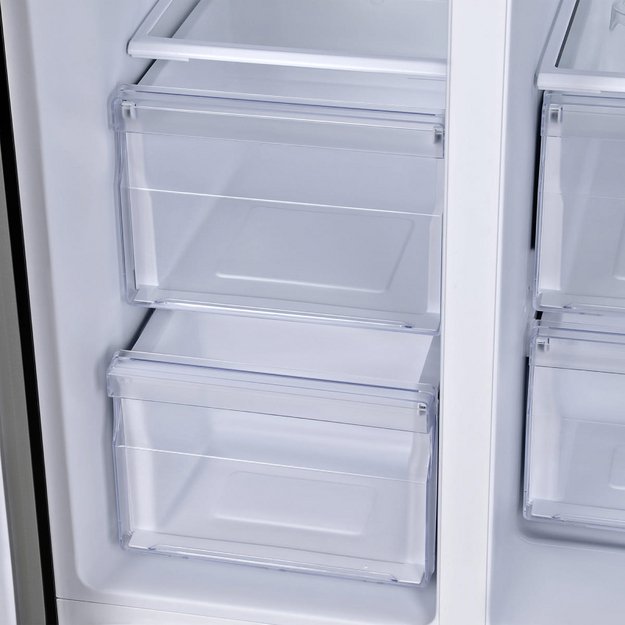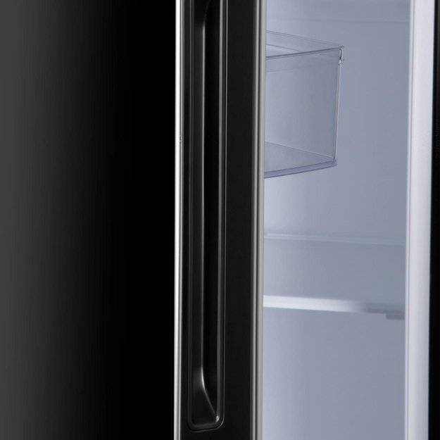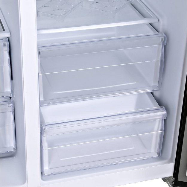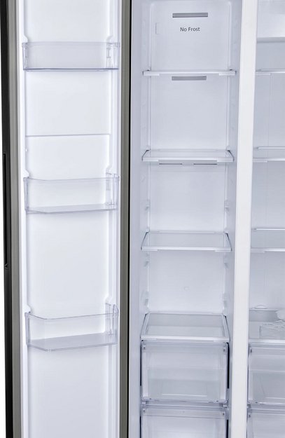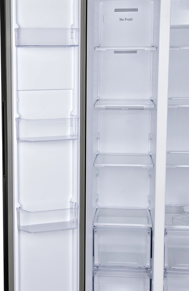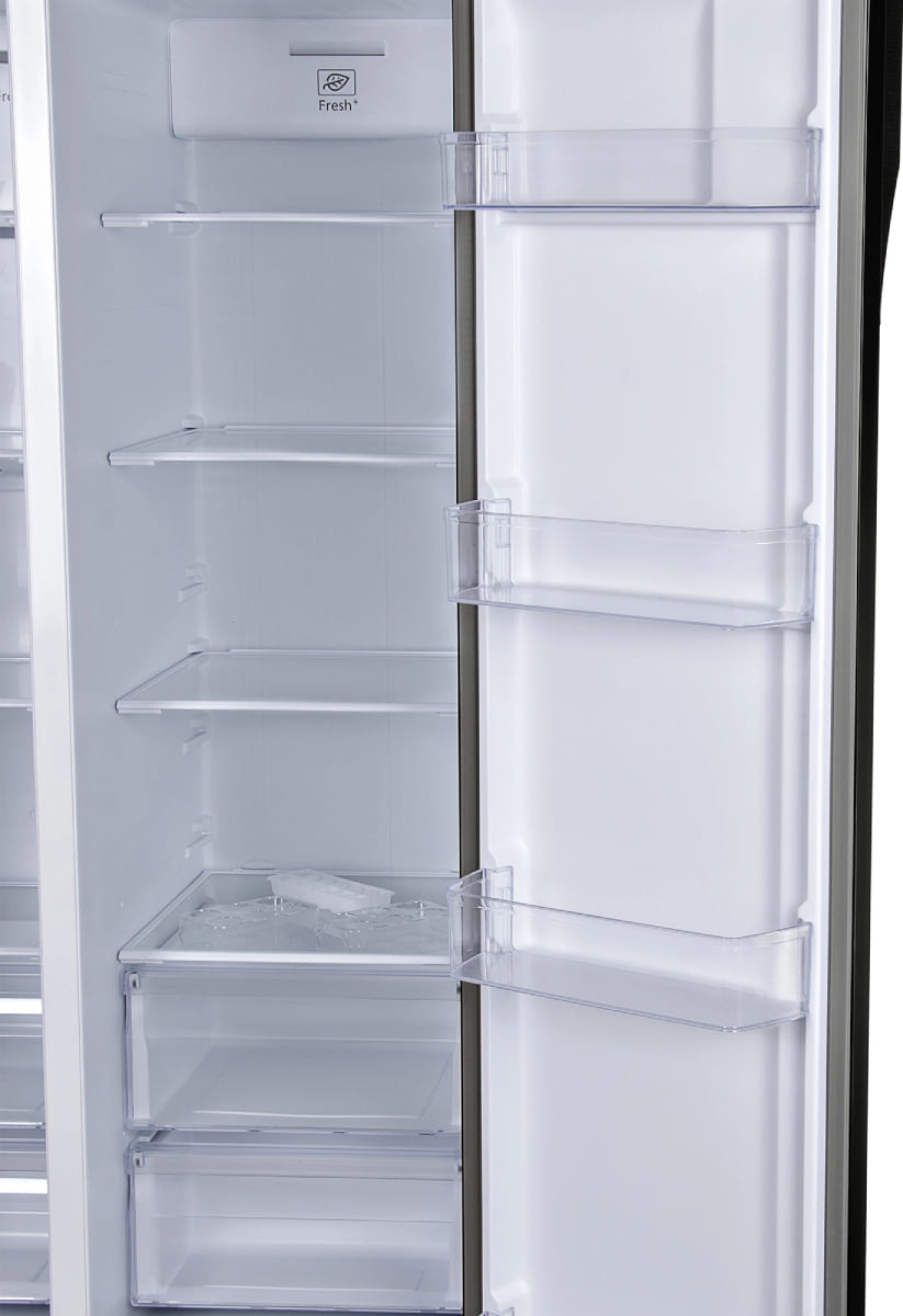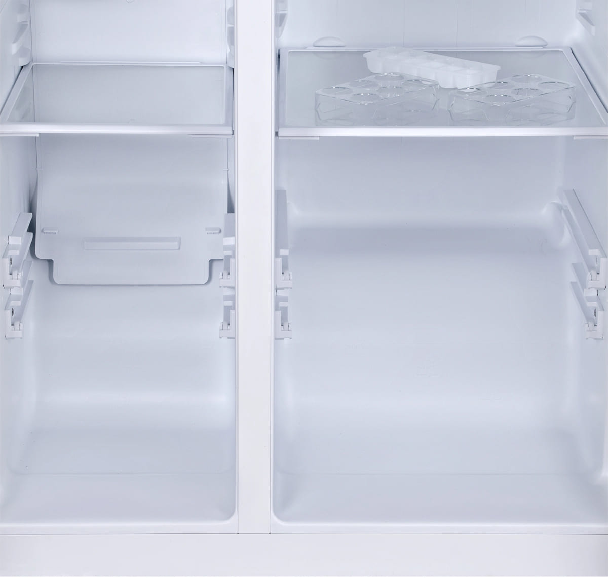 Данная модель — отдельностоящая, поэтому нужно тщательно подобрать место для ее размещения. Холодильник Side-by-Side с необычным расположением камер — сбоку друг от друга — позволяет увеличить объем продуктов для хранения. Такой вариант подходит обладателям просторной кухни, большим семьям, людям, которые запасают продукты и готовят впрок. Количество камер: 2.