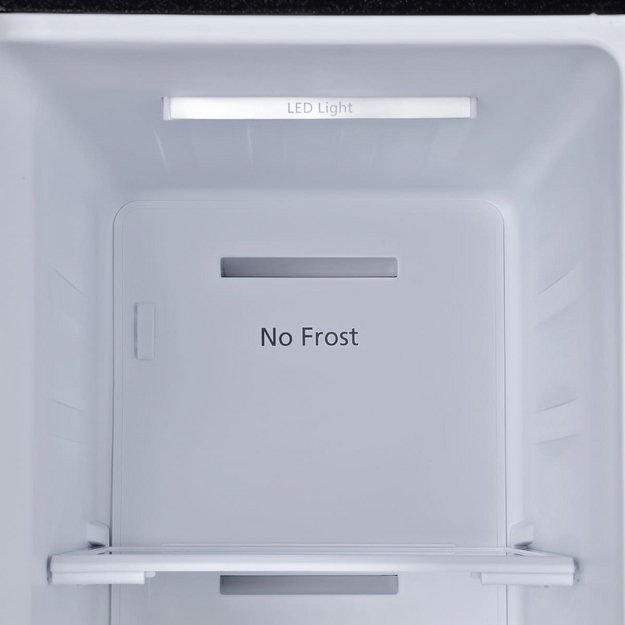 Образование льда предотвращает специальный вентилятор, который заставляет холодный воздух циркулировать по всему пространству морозильника. Лед при этом оседает не на стенках, а выводится за пределы камеры и остается на испарителе холодильника. Вентилятор работает попеременно с нагревателем, благодаря чему иней на испарителе оттаивает, а талая вода стекает в поддон, откуда испаряется естественным способом. Вопреки распространенному мнению, в морозильнике с системой No Frost продукты не заветриваются и не сохнут, а энергопотребление ненамного превышает этот показатель для обычных холодильников.