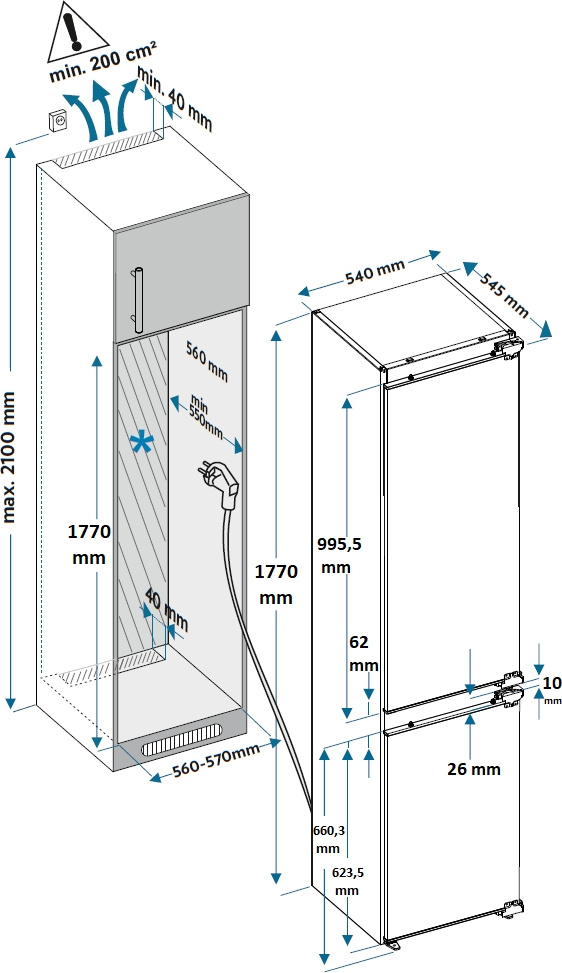 - Габариты ниши для встраивания (ВхШхГ): 177.6-177.8х56-57х50 см