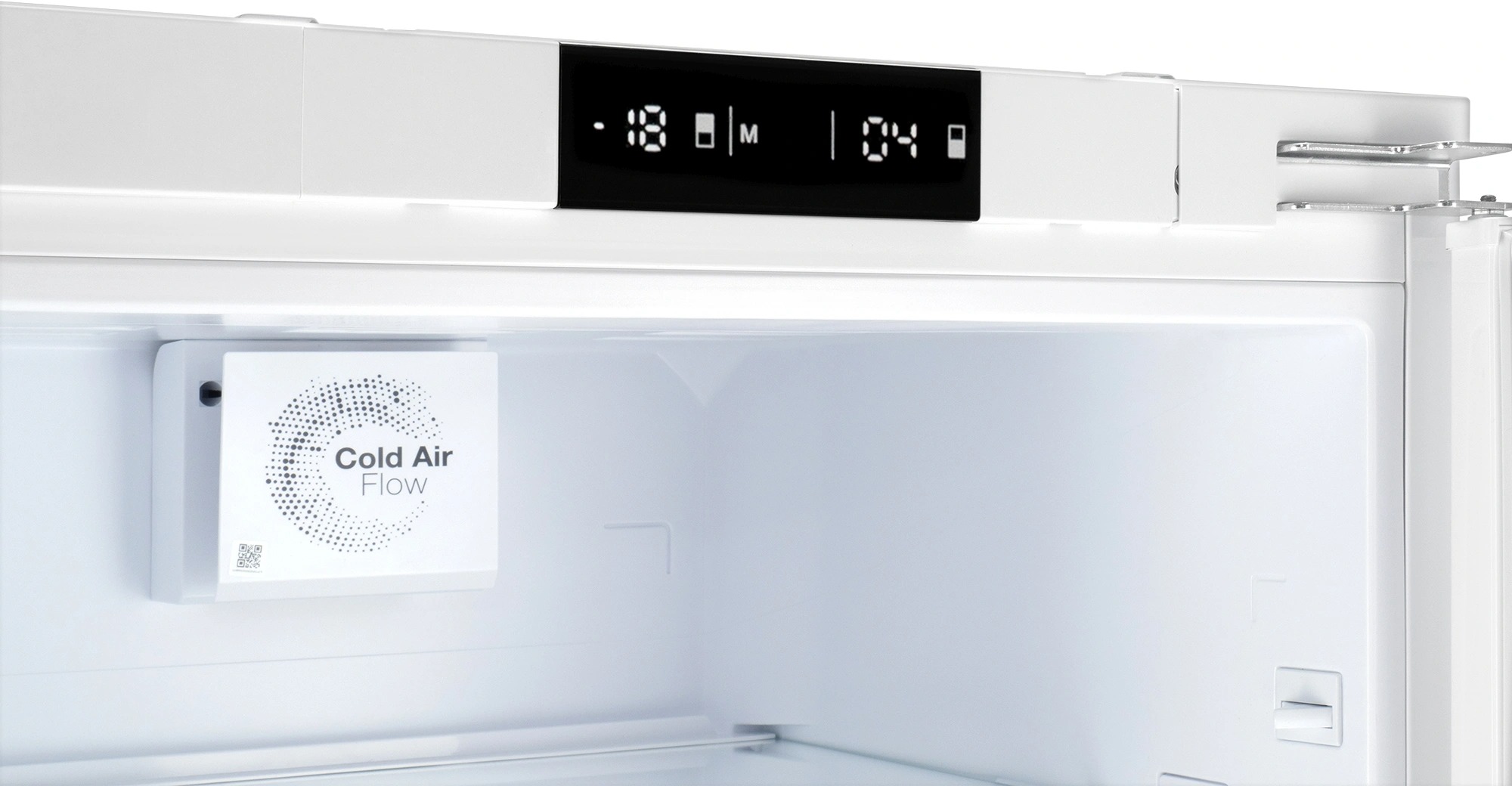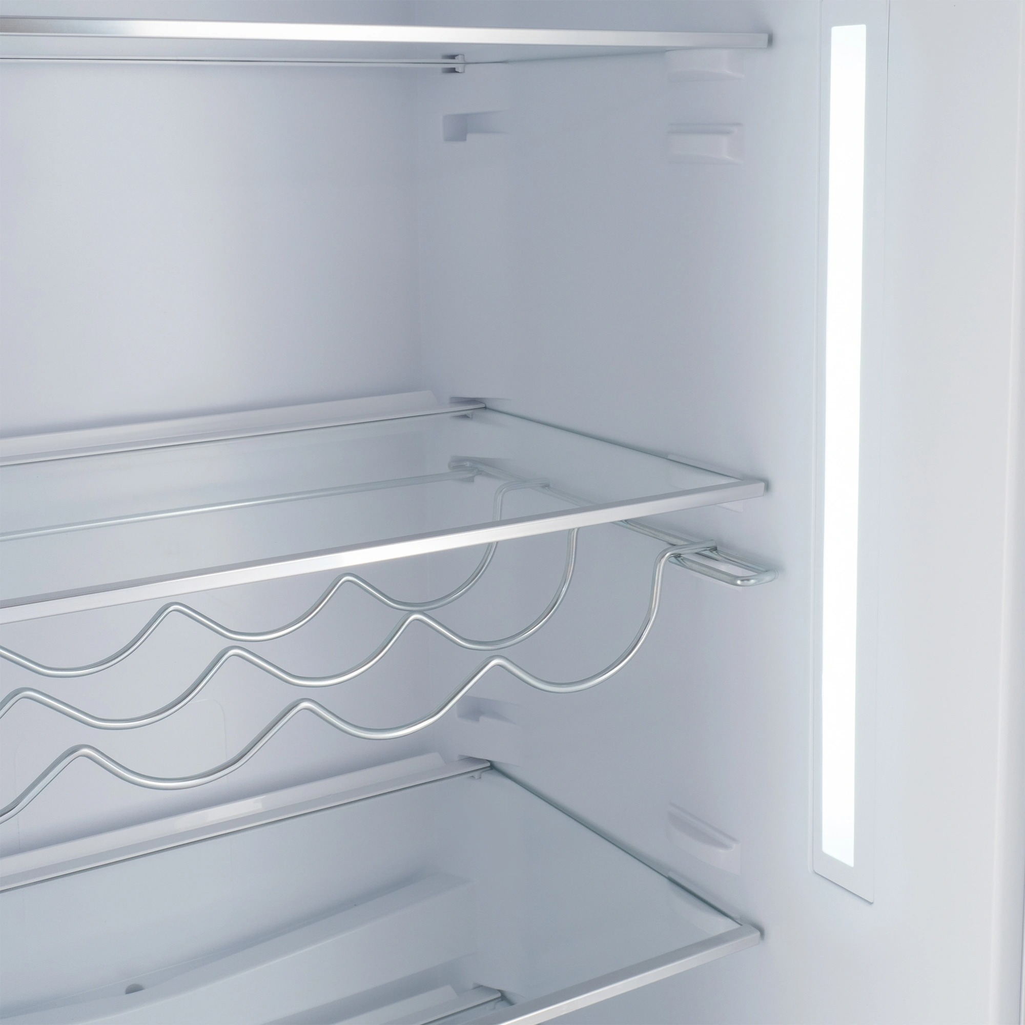 Встраиваемый прибор проще разместить в комнате, даже если общий метраж не такой уж большой. Вы можете спрятать его за декоративной панелью от мебельного фасада — советуем заранее определить нишу и заказывать панели исходя из типа крепления к двери. Вы можете поменять направление открывания двери, так как упор переставляемый и ее можно перевесить на другую сторону. Такая функция открывает больше возможностей для установки. Холодильник с морозильником обладает всеми опциями, которые чаще всего ищут и выбирают покупатели. Стандартная конфигурация — универсальный вариант для любой квартиры. Количество камер: 2.