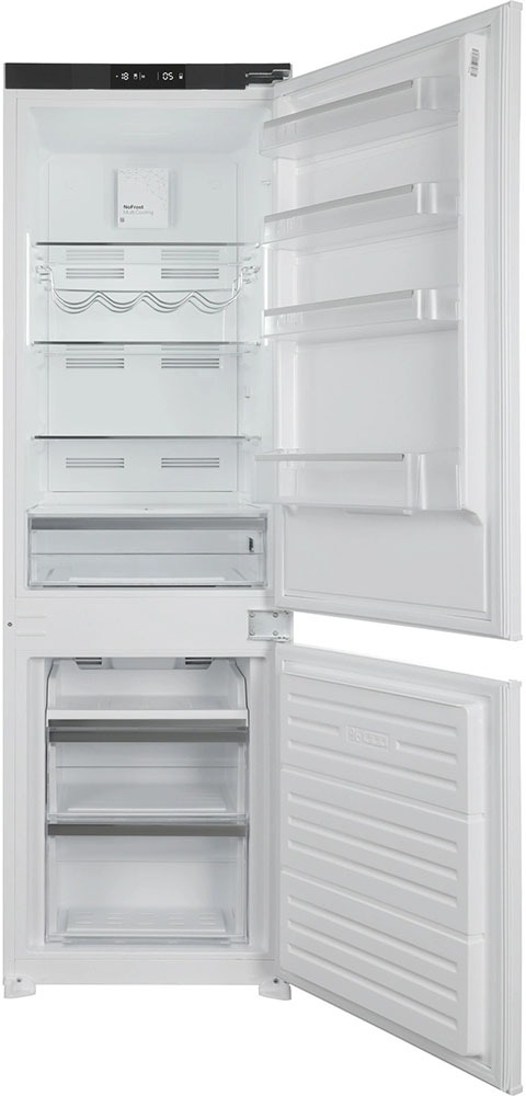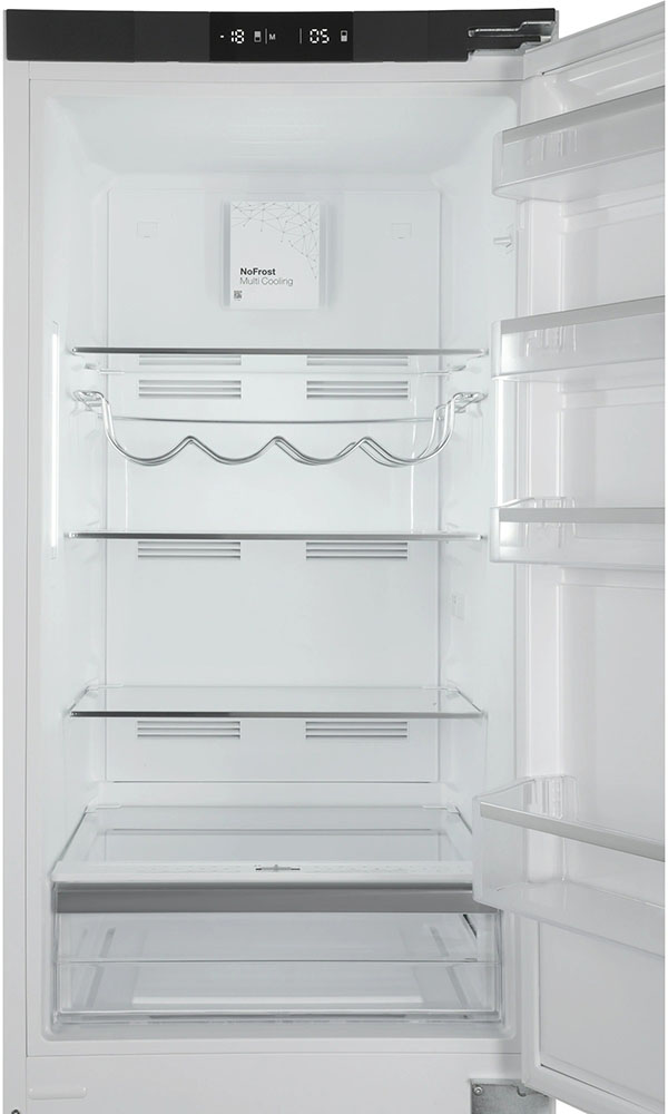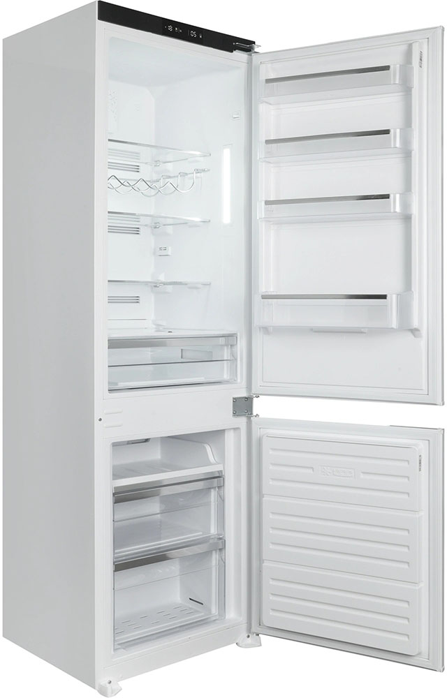 Встраиваемый прибор проще разместить в комнате, даже если общий метраж не такой уж большой. Вы можете спрятать его за декоративной панелью от мебельного фасада — советуем заранее определить нишу и заказывать панели исходя из типа крепления к двери. Способ монтажа в данной модели: жесткое крепление (система door on door) Холодильник с морозильником обладает всеми опциями, которые чаще всего ищут и выбирают покупатели. Стандартная конфигурация — универсальный вариант для любой квартиры. Количество камер: 2.