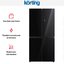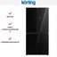 Korting KNFM 81787 GN — отдельно стоящий холодильник высотой 177 см и шириной 83 см в корпусе черного цвета. Большая холодильная камера объемом 303 литра с двумя распашными дверцами French Door находится сверху. Нижняя морозильная камера с двумя дверцами, состоящая из отделений, имеет объем 153 литра. Фасад изготовлен из блестящего закаленного стекла, легкого в очистке. На фронтальной части устройства расположена электронная панель управления с цифровым дисплеем и сенсорными кнопками для регулировки температуры и задания других параметров работы. Модель относится к климатическому классу SN-N-ST-T — ее можно использовать при наружной температуре от + 10 до +43 градусов.