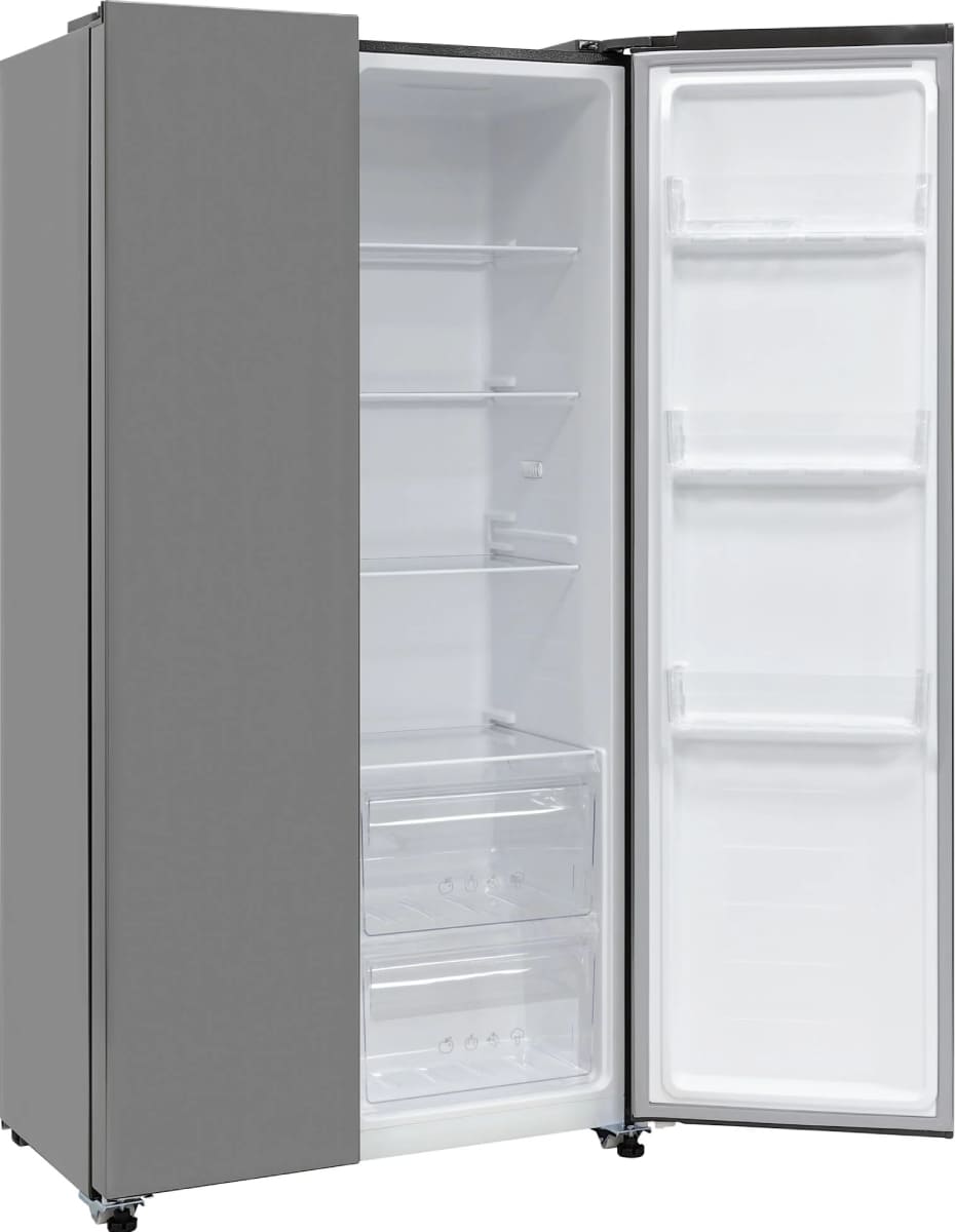 Данная модель — отдельностоящая, поэтому нужно тщательно подобрать место для ее размещения. Холодильник Side-by-Side с необычным расположением камер — сбоку друг от друга — позволяет увеличить объем продуктов для хранения. Такой вариант подходит обладателям просторной кухни, большим семьям, людям, которые запасают продукты и готовят впрок. Количество камер: 2.