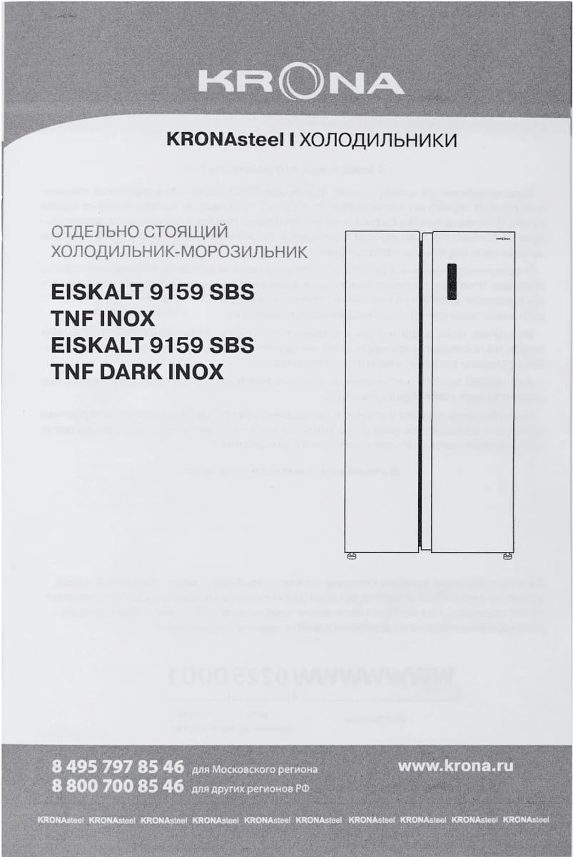 Холодильник KRONA EISKALT 9159 SBS TNF INOX — замечательный выбор для всех, кто нуждается в надежном и современном приборе, чтобы обустроить кухню по последнему слову техники.