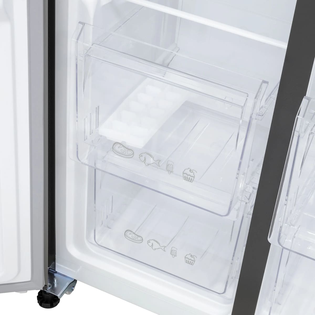Очень редко в холодильниках можно увидеть откидную дверцу — она имеется, например, в отсеке для вакуумирования в холодильниках Hitachi.