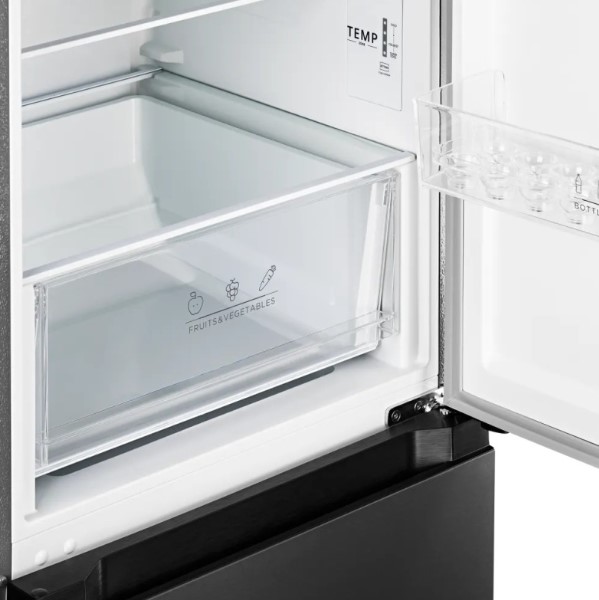 Холодильники с так называемой французской дверью или French Door также имеют распашные двери, но за ними находится не две, а одна камера. Эти двери занимают не всю высоту холодильника, а только ее часть. В нижней части подобных холодильников могут находиться либо еще две распашные двери, либо выдвижные морозильные ящики.