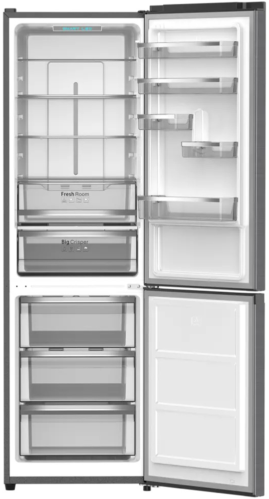 Специальная зона свежести предназначена для правильного и более длительного хранения овощей, фруктов, зелени. В ней поддерживается околонулевая температура, поэтому продукты не перемораживаются и не пересыхают. Система охлаждения этого холодильника — циркуляционная .