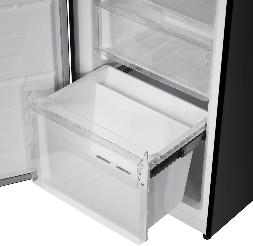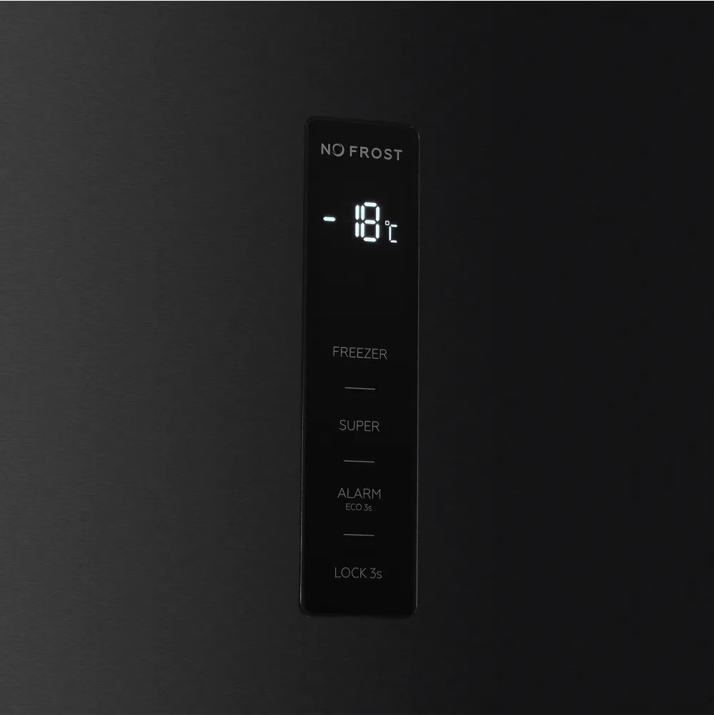 Морозильная камера Kuppersberg NFS 189 DX — стильный отдельностоящий агрегат, который сочетает в себе эргономичный внешний вид и продуманный набор опций для хранения продуктов в домашних условиях. Высокий корпус 185×60×65 см вместительно размещает 262 литра полезного объема, распределённых между пятью стационарными полками и четырьмя выдвижными ящиками, а в дверной части предусмотрено два дополнительных держателя для мелких упаковок; чёрное исполнение добавляет интерьеру современности и строгости. Управление реализовано в электронном формате с сенсорными клавишами и информативным LED-дисплеем, позволяющим точно выставлять температуру и активировать режим SuperFrost для быстрого замораживания до 24 кг в сутки; индикаторы отображают текущее состояние камер и облегчают контроль, а звуковые сигналы оповестят о незакрытой створке или повышении температуры. Система циркуляционного охлаждения в сочетании с инверторным компрессором обеспечивает стабильную работу, экономию энергии и низкий уровень шума — всего 43 дБ, а хладагент R600a соответствует современным экологическим требованиям. Автоматическое размораживание избавляет от необходимости ручного ухода, внутри установлено светодиодное освещение, которое равномерно подсвечивает содержимое, а лоток для льда позволит быстро приготовить кубики для напитков. Универсальный климатический класс SN-N-ST-T гарантирует эффективную работу в широком диапазоне температур, защита от детей и звуковая индикация повысят безопасность, а возможность перевешивания двери и регулируемые ножки упрощают установку в разных помещениях. Технические параметры — питание 220-240 В при частоте 50 Гц и токе 10 А — соответствуют стандартам бытовых сетей, энергоэффективность подтверждена классом A+, что снижает нагрузку на счётчики. Подчёркнутая функциональность в паре с лаконичным обликом делает этот прибор отличным решением для тех, кто ценит высокое качество хранения продуктов, простоту обслуживания и современные технические решения без лишних усложнений.