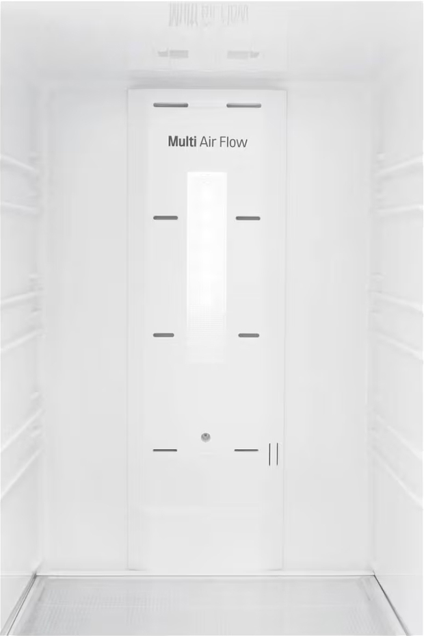 Специальная зона свежести предназначена для правильного и более длительного хранения овощей, фруктов, зелени. В ней поддерживается околонулевая температура, поэтому продукты не перемораживаются и не пересыхают. Система охлаждения этого холодильника — многопоточное охлаждение Multi-flow.