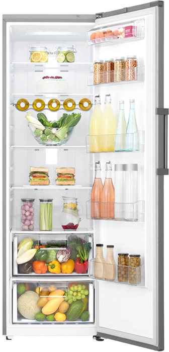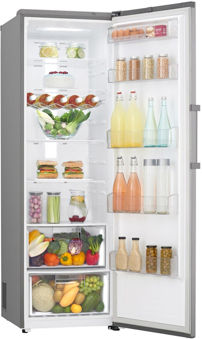 Данная модель — отдельностоящая, поэтому нужно тщательно подобрать место для ее размещения. Холодильник без морозильной камеры имеет свои преимущества: больше места для хранения продуктов краткого срока годности, разнообразие полок и ящиков для овощей, фруктов, молочных изделий. Количество камер: 1.