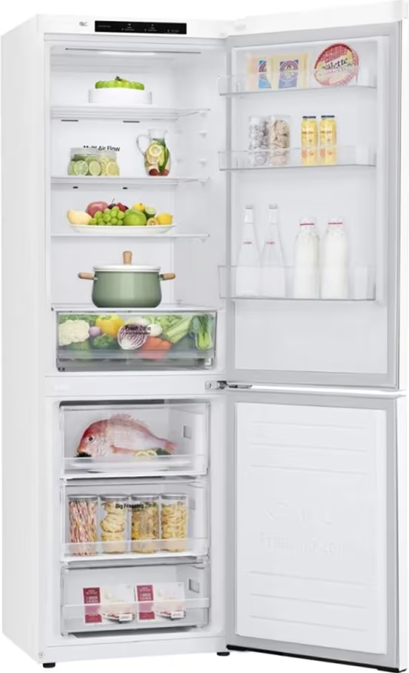 Внутреннее наполнение холодильной и морозильной камер включает многочисленные и разнообразные полки, ящики, контейнеры. Все они используются для более удобного и рационального размещения продуктов, которое обеспечивает хороший обзор содержимого холодильника и быстрый поиск.