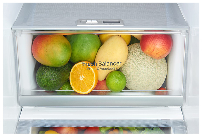 Вместительные контейнеры позволяют хранить достаточное количество овощей и фруктов. Для более длительного хранения и поддержания свежести овощей и фруктов разработаны специальные системы хранения. Среди них, например, зона свежести с увеличенной влажностью до 85% и температурой около 0 градусов. Это герметично закрывающийся ящик, часто на выдвижных роликах или направляющих, в котором имеется специальное задвижка, позволяющая регулировать влажность. Как известно, при более высокой влажности продукты с большим содержанием воды дольше остаются свежими.