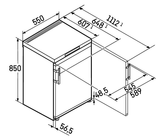 Мини-холодильники, которые могут быть установлены в тумбу или под столешницу, отличаются несколько меньшей шириной от 50 см. Такую же небольшую ширину имеют встраиваемые модели, что связано со способом их установки.