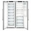В числе подобных устройств имеются как отдельностоящие, так и встраиваемые модели: в любом случае они требуют много места для установки и могут быть размещены в просторном помещении. Преимуществом подобных устройств является прежде всего их вместительность, отличный обзор обеих камер, удобство использования, два контура охлаждения и возможность точной раздельной регулировки температуры. Кроме того, модели Side-by-Side преимущественно относятся к премиум-классу — имеют стильный внешний вид и большой набор дополнительных возможностей. Система размораживания подобных устройств — No Frost или капельная, — позволяет свести уход за прибором к минимуму.