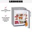Холодильник Liebherr TPesf 1714 Comfort — компактный прибор высотой 85 см из дизайн-серии HardLine. Модель отличает серебристый стальной корпус, дверца из нержавейки и удобная ручка со встроенным толкателем. Благодаря стандартной ширине 60 см и съемной верхней панели устройство можно установить под столешницей или разместить в готовой нише. При автономном размещении верхняя панель послужит в качестве стола. Облегчить выбор места для установки прибора помогут перенавешиваемая дверца и регулируемые по высоте ножки. Общий объем холодильника составляет 152 литра. Расположенная сверху 4-звездочная морозильная камера объемом 19 литров позволяет поддерживать температуру −18°C и ниже. Она способна сохранять холод на протяжении 10 часов при отключении электроэнергии. В холодильном отделении одну из двух полок из ударопрочного стекла можно переставить по высоте. Бутылки и банки могут устанавливаться на съемных полках, расположенных на дверце. Климатический класс SN-ST позволяет использовать прибор при наружной температуре от +10°С до +38°С.