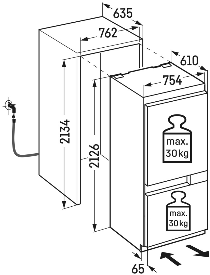 - Габариты ниши для встраивания (ВхШхГ): 213.4х91.4х63.5 см