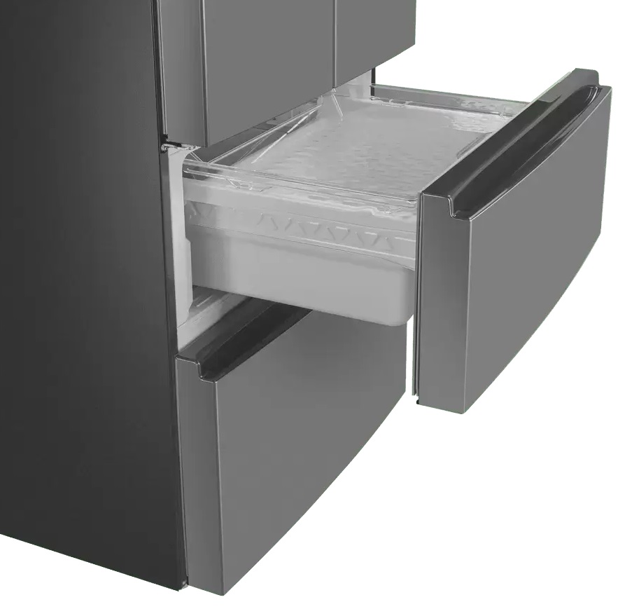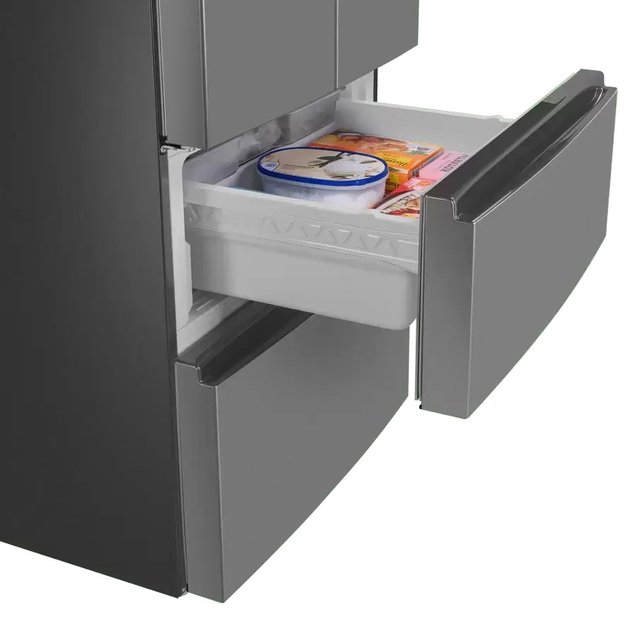 Холодильники с так называемой французской дверью или French Door также имеют распашные двери, но за ними находится не две, а одна камера. Эти двери занимают не всю высоту холодильника, а только ее часть. В нижней части подобных холодильников могут находиться либо еще две распашные двери, либо выдвижные морозильные ящики.