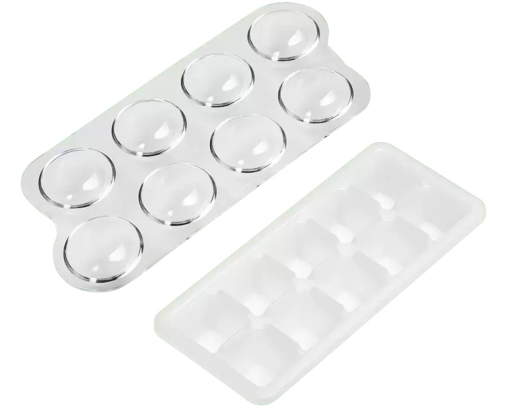 Лоток для приготовления кубиков льда имеется во всех морозильных камерах. В простейшем случае он представляет собой пластиковый контейнер, разделенный на квадратные ячейки и служащий для получения классических кубиков.