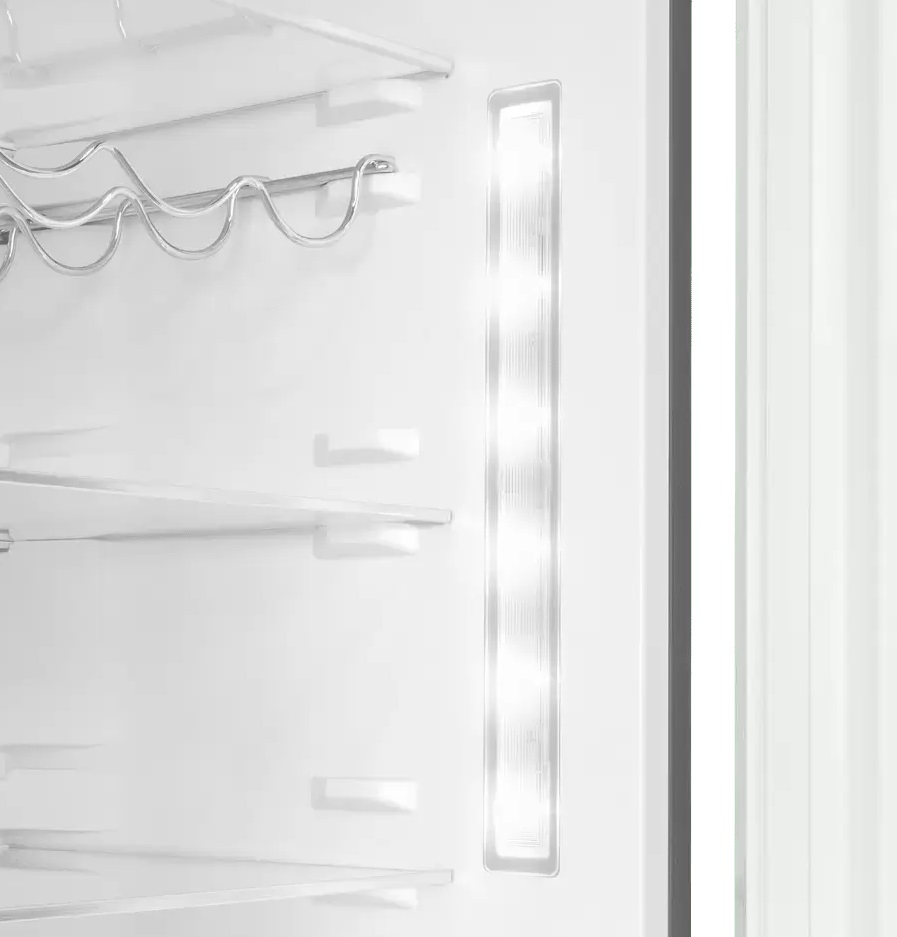 Внутреннее освещение холодильной камеры позволяет обеспечить хороший обзор содержимого и быстро найти необходимые продукты. Чем меньше времени будет открыта дверца холодильника, тем лучше будет поддерживаться в камере выбранная температура, следовательно, улучшится и качество хранения продуктов.