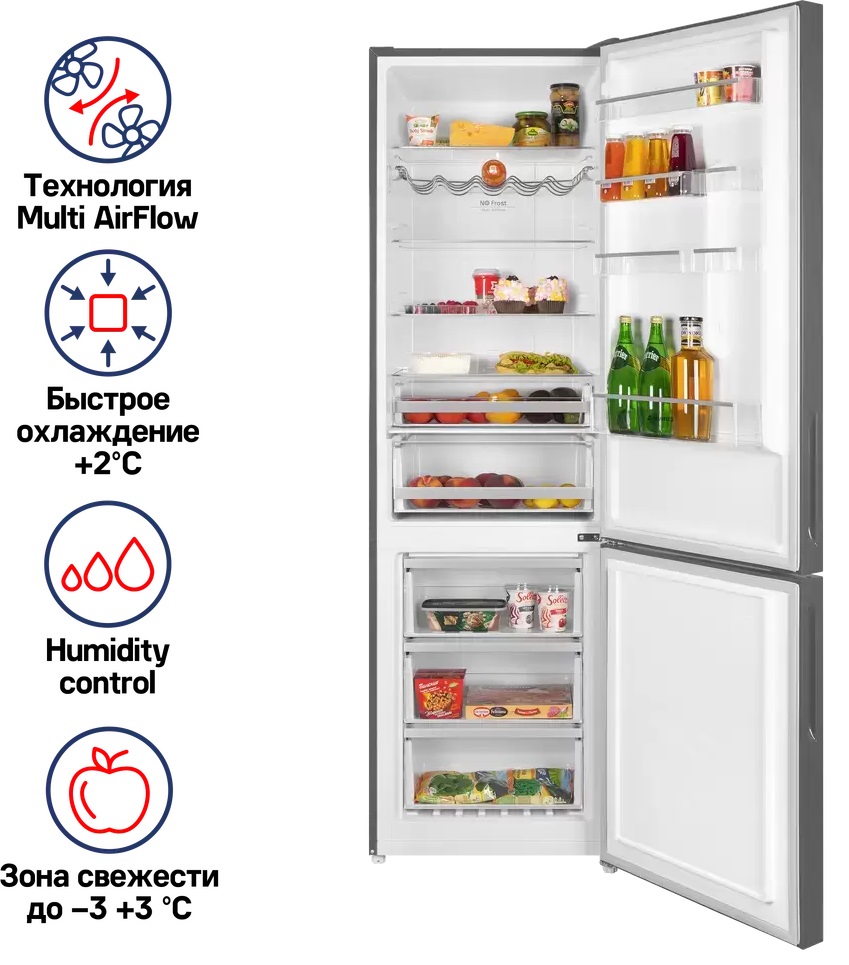 Холодильник Maunfeld MFF200NFSE — замечательный выбор для всех, кто нуждается в надежном и современном приборе, чтобы обустроить кухню по последнему слову техники.