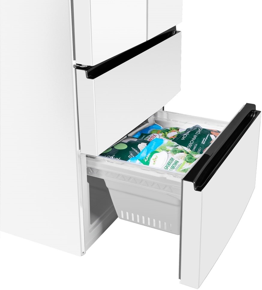 Трехкамерные модели выпускаются в нескольких вариантах. В некоторых случаях в качестве третьей камеры поступает так называемая зона свежести — отделение, где поддерживается температура около 0 градусов. В другом варианте подобные модели имеют морозильную камеру, состоящую из двух выдвижных ящиков.