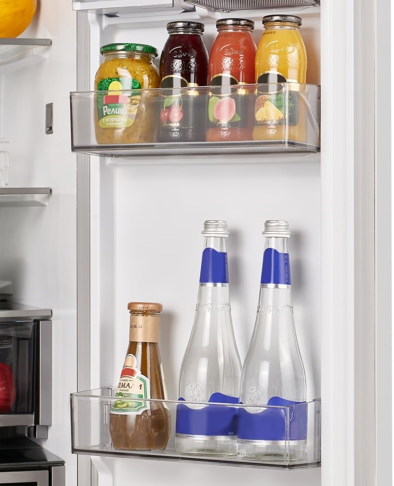 Полки в холодильнике позволяют рационально организовать хранение продуктов, обеспечить легкий поиск и доступ к ним. Основные материалы для изготовления полок — это пластик, стекло и металл. Часть полок можно переставлять по высоте или складывать вдвое или втрое.