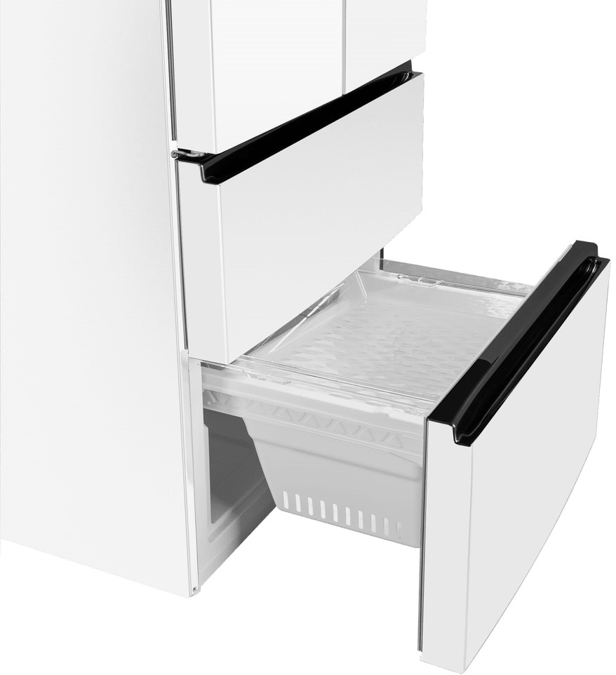 Холодильники с так называемой французской дверью или French Door также имеют распашные двери, но за ними находится не две, а одна камера. Эти двери занимают не всю высоту холодильника, а только ее часть. В нижней части подобных холодильников могут находиться либо еще две распашные двери, либо выдвижные морозильные ящики.