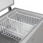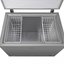 Внутренняя камера морозильного ларя, как правило, не содержит полок, ящиков и других подобных разделителей — это большой цельный отсек, в котором сверху могут крепиться металлические сетчатые корзины. Такая конструкция позволяет максимально увеличить вместительность устройства.