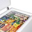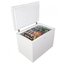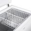 Внутренняя поверхность камеры выполнена из пластика с антибактериальным покрытием, гигиеничного и легкого в очистке. Крышка с удобной встроенной ручкой открывается на широкий угол, так что загрузка продуктов большого размера на составит труда. Для хранения мелких упаковок служат две съемные сетчатые корзины, которые навешиваются на края ларя. Имеется также специальная форма для получения кубиков льда.