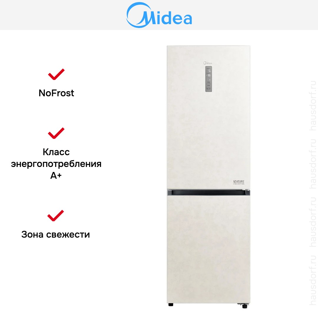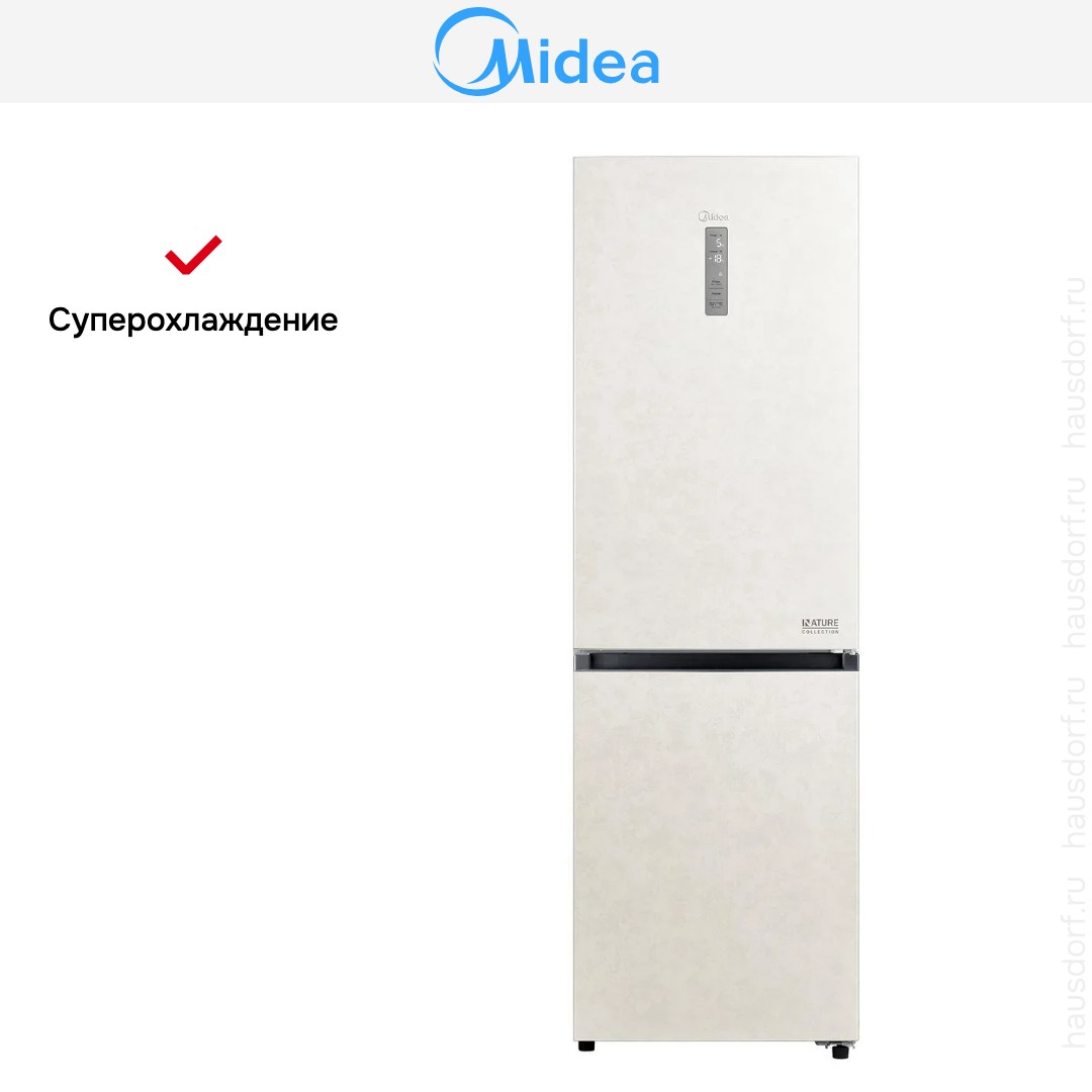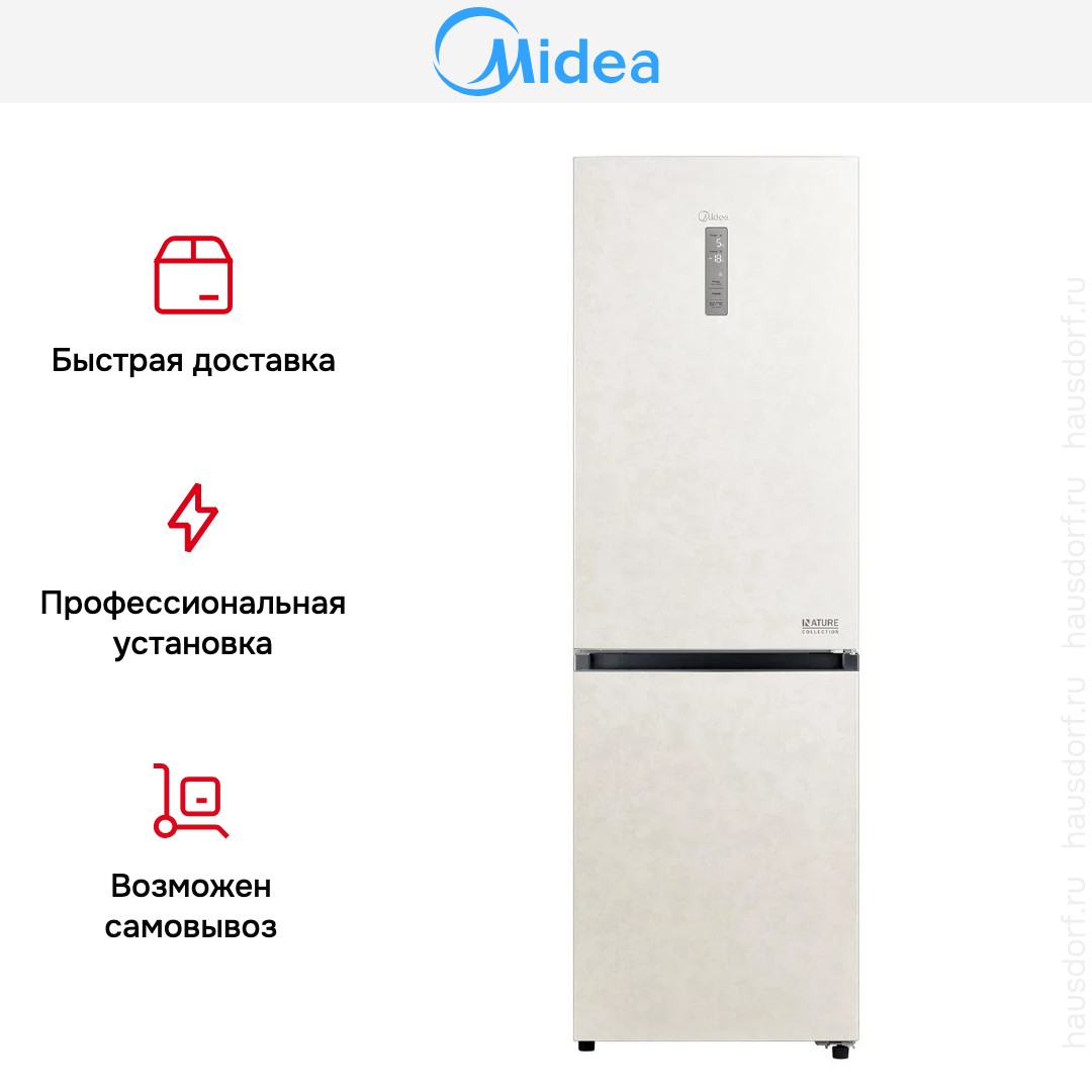 Холодильник Midea MDRB471MGF33O — отдельно стоящий двухкамерный агрегат с нижним расположением морозильной камеры и элегантным беже-вым оформлением корпуса. Он имеет компактные по объему внешние размеры 185×59.5×66 см, что делает его удобным для размещения в кухнях разных планировок, при этом правый дверной упор следует учесть при выборе места установки. Двухдверная конструкция сохраняет строгие линии фронтальной панели, а нейтральный бежевый тон легко сочетается с различными интерьерами.