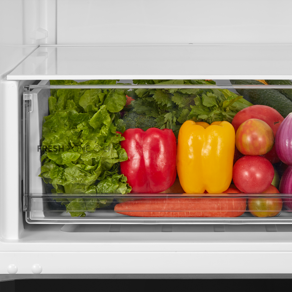 Специальная зона свежести предназначена для правильного и более длительного хранения овощей, фруктов, зелени. В ней поддерживается околонулевая температура, поэтому продукты не перемораживаются и не пересыхают. Система охлаждения этого холодильника — циркуляционная .