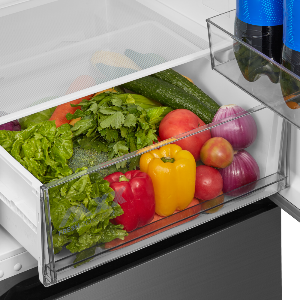 Трехкамерные модели выпускаются в нескольких вариантах. В некоторых случаях в качестве третьей камеры поступает так называемая зона свежести — отделение, где поддерживается температура около 0 градусов. В другом варианте подобные модели имеют морозильную камеру, состоящую из двух выдвижных ящиков.