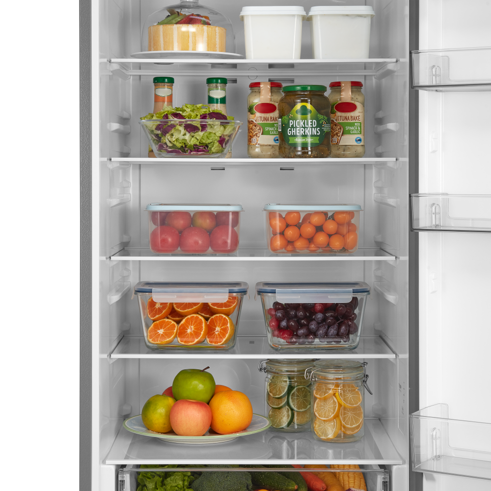 Полки в холодильнике позволяют рационально организовать хранение продуктов, обеспечить легкий поиск и доступ к ним. Основные материалы для изготовления полок — это пластик, стекло и металл. Часть полок можно переставлять по высоте или складывать вдвое или втрое.