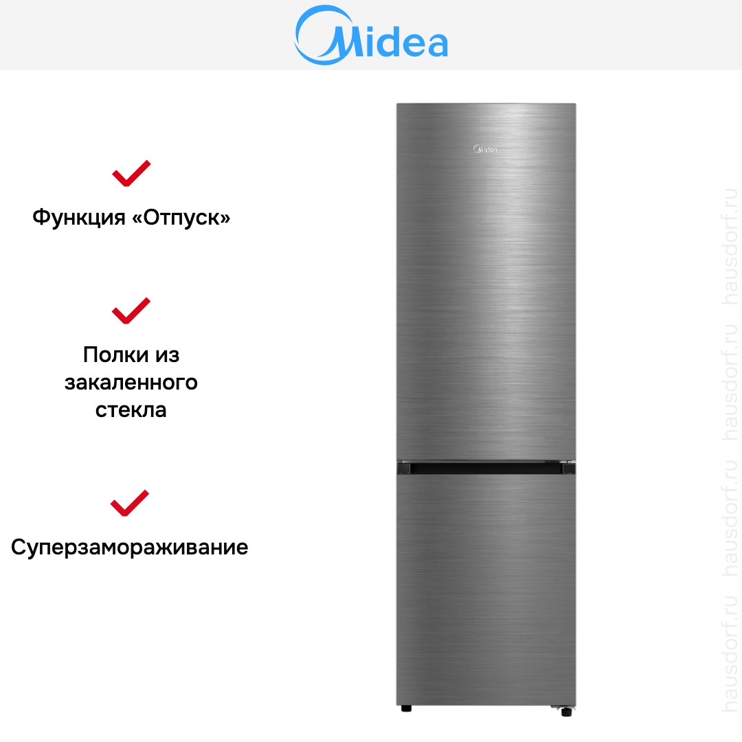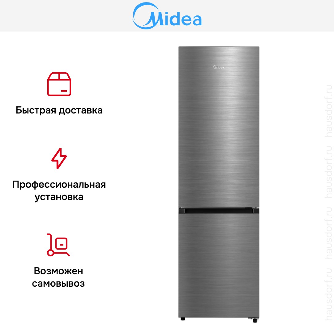 Холодильник Midea MDRB519MGE46ID сочетает продуманный внешний вид и продвинутые технические решения. Дизайн в цвете нержавеющей стали выглядит сдержанно и стильно, он впишется в разные интерьеры кухни. Высота 201 см делает прибор визуально монументальным, а узкая ширина 59.5 см позволяет экономить место вдоль кухонного гарнитура. Правый дверной упор влияет на схему расстановки мебели, поэтому при планировке полезно учитывать сторону открывания. Матовая металлическая поверхность удобна в уходе и меньше маркируется отпечатками, чем глянцевые фасады.