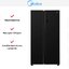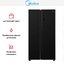 Холодильник Midea MDRS710FGE30 — стильный отдельно стоящий агрегат формата Side-by-Side в глубоком черном цвете. Его строгая фронтальная панель и аккуратные вертикальные двери создают эффект современной встроенной мебели. Габариты 176.5×89.7×70.6 см обеспечивают внушительное присутствие, не теряя пропорций в стандартной кухне. Матовая поверхность и минималистичный дисплей подчеркивают премиальный характер корпуса.