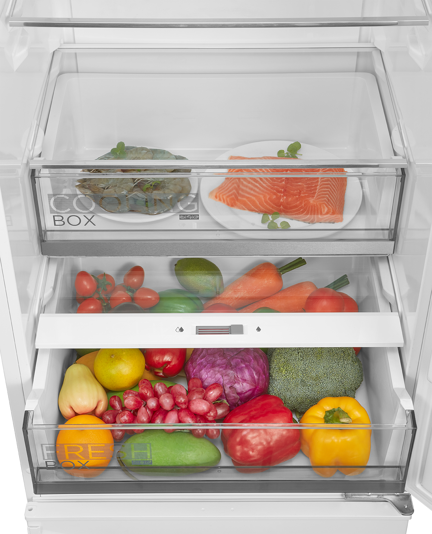 Ящики для овощей и фруктов можно найти в любой холодильной камере, какого размера ни был бы ваш холодильник — от большого устройства Side-by-Side до стандартной двухкамерной модели. В простейшем варианте они представляют собой обычные выдвижные ящики из пластика в нижней части камеры.