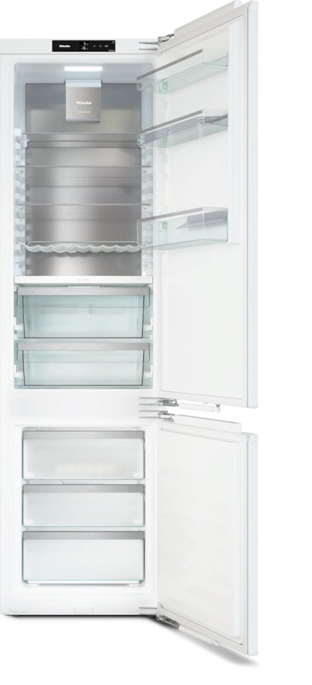 Встраиваемый холодильник Miele KFN 7844 C — элегантное устройство под фасад вашего гарнитура, рассчитанное на монтаж по системе door on door. Его габариты 193,855,954,6 см делают прибор идеальным для установки в кухонный гарнитур. Жесткое крепление двери позволяет надежно зафиксировать мебельный фасад до 18 кг, а возможность перевешивания петли дает свободу при планировке кухни.
