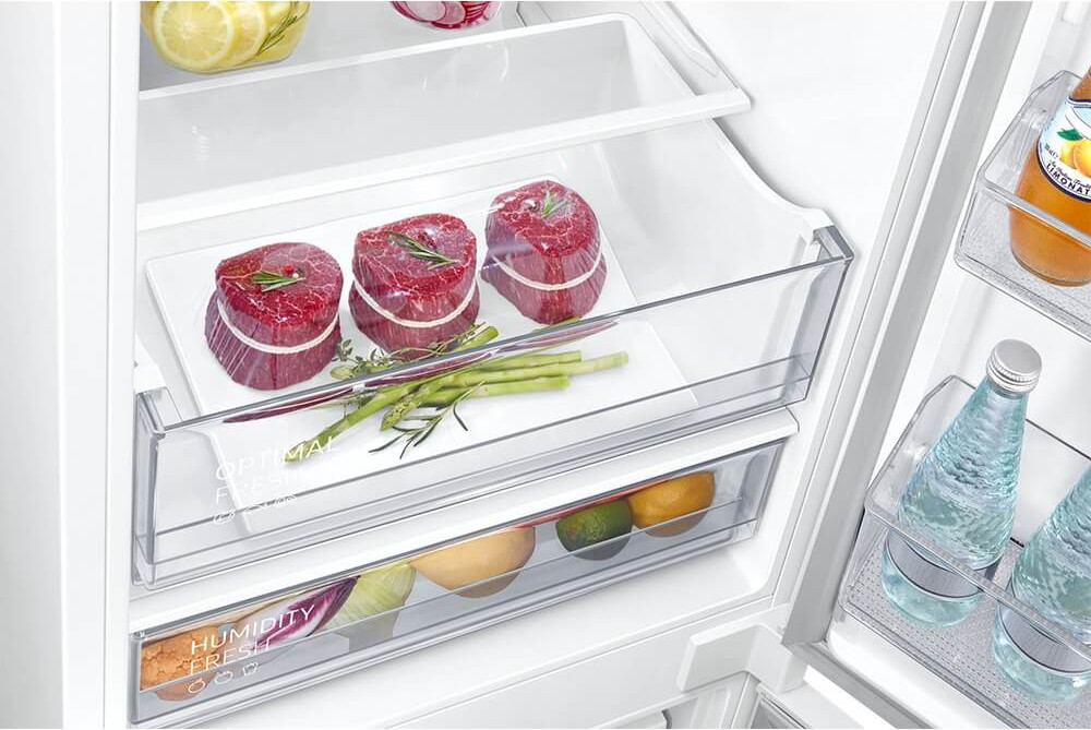 Специальная зона свежести предназначена для правильного и более длительного хранения овощей, фруктов, зелени. В ней поддерживается околонулевая температура, поэтому продукты не перемораживаются и не пересыхают.