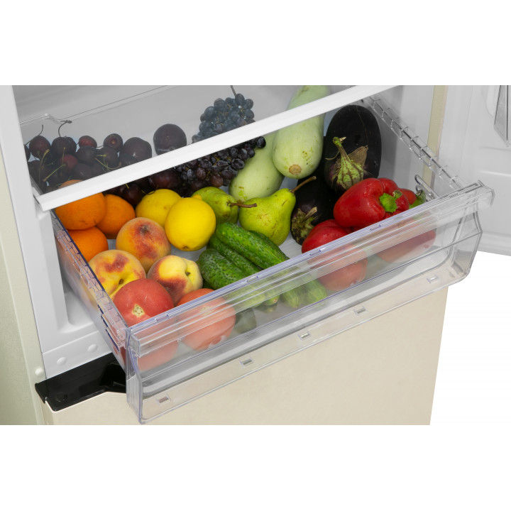 Вместительные контейнеры позволяют хранить достаточное количество овощей и фруктов. Для более длительного хранения и поддержания свежести овощей и фруктов разработаны специальные системы хранения. Среди них, например, зона свежести с увеличенной влажностью до 85% и температурой около 0 градусов. Это герметично закрывающийся ящик, часто на выдвижных роликах или направляющих, в котором имеется специальное задвижка, позволяющая регулировать влажность. Как известно, при более высокой влажности продукты с большим содержанием воды дольше остаются свежими.