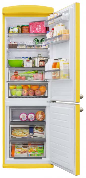 Цветные холодильники придают кухне особый шарм. Яркий прибор станет заметной деталью и центром кухни в ретро-стиле (особенно стоит обратить внимание на цветные холодильники производства «Смег»), а также индустриальном или лофт. Необычные пастельные оттенки отлично смотрятся в интерьерах в деревенском или средиземноморском стиле.