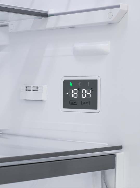 Система управления холодильником позволяет самостоятельно выбирать температуру охлаждения каждой камеры, задавать дополнительные параметры, контролировать работу прибора. П