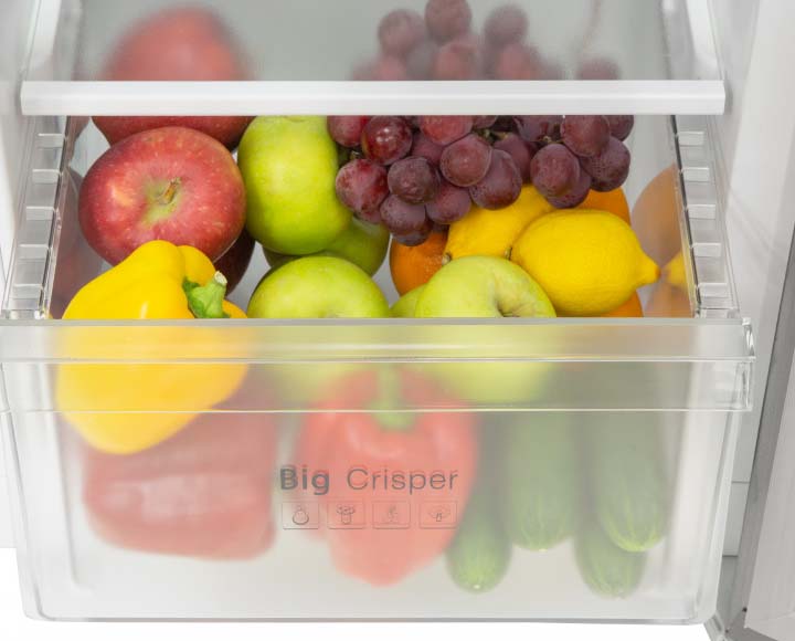 Ящики для продуктов изготавливаются либо целиком из прозрачного пластика, либо часто имеют переднюю прозрачную панель, которая обеспечивает лучший обзор. Полки в большинстве холодильников могут перемещаться по высоте, устанавливаются на специальных направляющих и без труда снимаются для очистки.