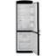 Двухкамерный холодильник глубокого черного цвета в ретро-стиле. Оба отделения вместительные, в верхнем установлено 8 полок (в том числе на дверце), есть отдельный лоток для яиц. В морозильнике три больших ящика и форма для создания кубиков льда. Система No Frost позволяет забыть о регулярном размораживании