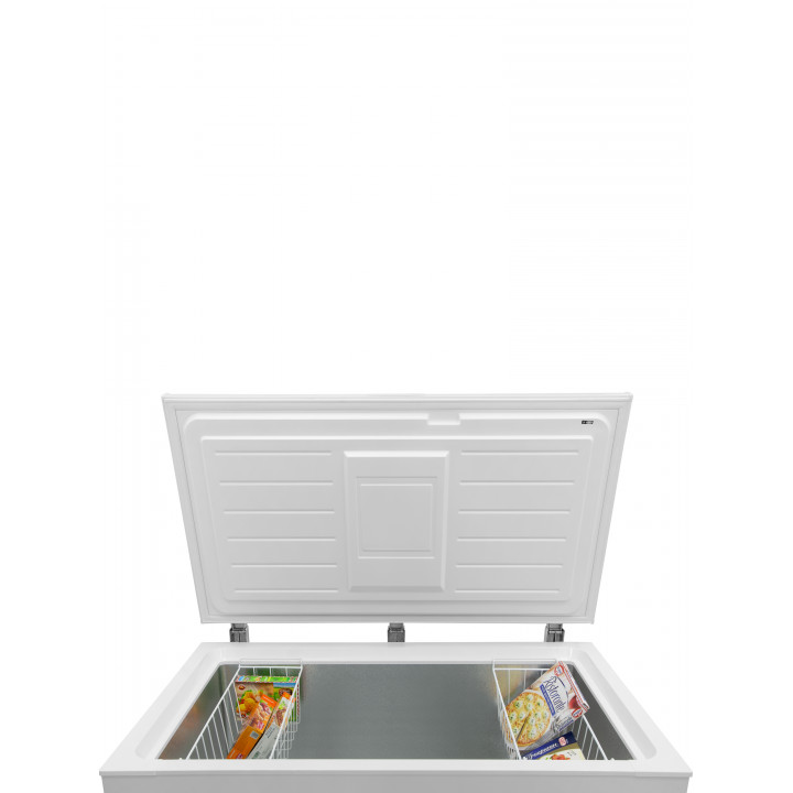 Внутренняя камера морозильного ларя, как правило, не содержит полок, ящиков и других подобных разделителей — это большой цельный отсек, в котором сверху могут крепиться металлические сетчатые корзины. Такая конструкция позволяет максимально увеличить вместительность устройства.
