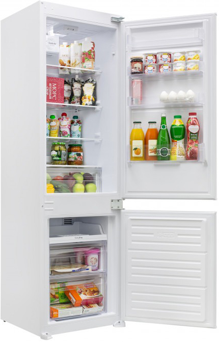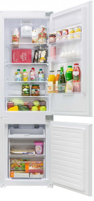 Встраиваемый прибор проще разместить в комнате, даже если общий метраж не такой уж большой. Вы можете спрятать его за декоративной панелью от мебельного фасада — советуем заранее определить нишу и заказывать панели исходя из типа крепления к двери. Способ монтажа в данной модели: скользящее крепление двери (система door sliding) Вы можете поменять направление открывания двери, так как упор переставляемый и ее можно перевесить на другую сторону. Такая функция открывает больше возможностей для установки. Холодильник с морозильником обладает всеми опциями, которые чаще всего ищут и выбирают покупатели. Стандартная конфигурация — универсальный вариант для любой квартиры. Количество камер: 2.