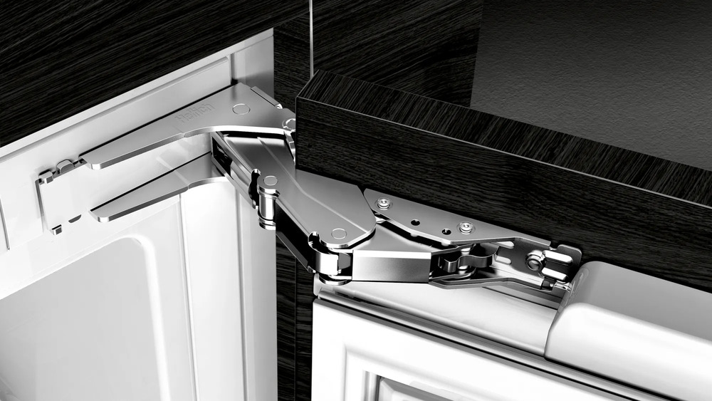 Подобная конструкция достаточно сложна, а кроме того, между наружной и внутренней дверями остается небольшой зазор, в котором со временем может накапливаться пыль и грязь, что ведет к преждевременному изнашиванию механизма. В подобных холодильниках не рекомендуется сильно нагружать дверные полки, чтобы дверца из-за этого не могла просесть. Достоинством системы Door Sliding является более широкий выбор материалов декоративных фасадов: поскольку наружная дверца опирается на собственные петли, вес ее может быть значительным.