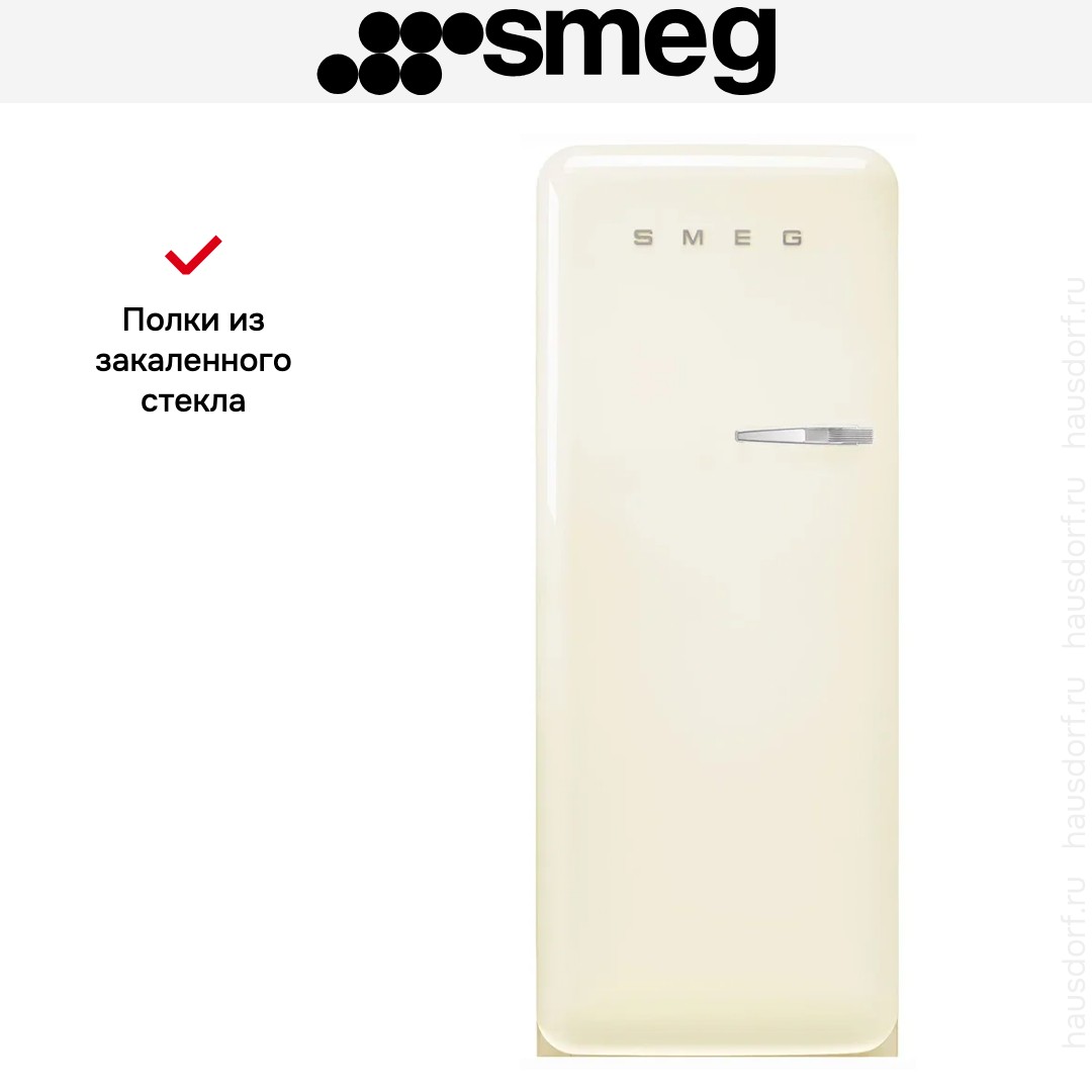 Холодильник Smeg FAB28LCR6 выполнен в кремовом оттенке с плавными винтажными линиями и узнаваемым ретро-стилем, который оживит любую кухню. Корпус имеет аккуратные габариты 153×60.1×72.8 см и внешнюю ручку, что делает прибор заметным, но не громоздким. Такой дизайн сочетает эстетичность и практичность, он впишется и в современный интерьер, и в классическую кухню.